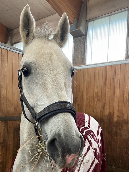 Das ist der Neue, der Bruder vom Konrad - Conversano Aquileja II, oder eben Konstantin. Der hat lange in Wien gewohnt in der Hofreitschule. Und jetzt ist er aber bei uns. Wir haben das gleiche Hobby: Heu!